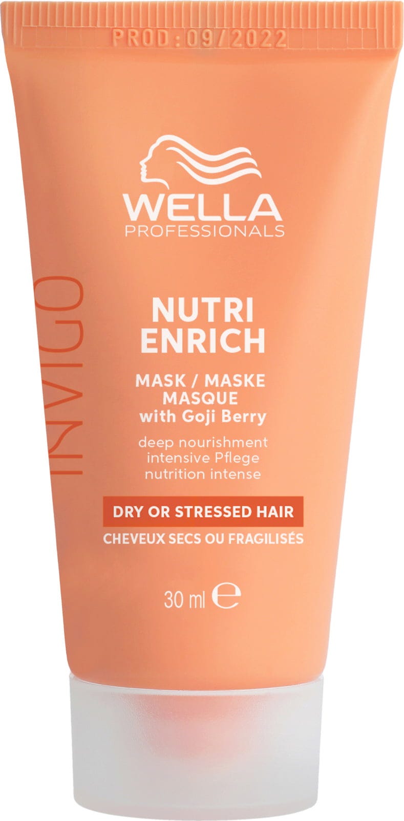 Invigo Nutri-Enrich Mask znamke Wella Professionals je popolna vlažilna nega za suhe, poškodovane in obremenjene lase, ki potrebujejo novo vitalnost. Zasnovana z inovativnim kompleksom Nutri-Enrich, ta maska vnese dragoceno oleinsko kislino in pantenol globoko v vsak lasni pramen ter mu zagotovi intenzivno vlago in esencialna hranila. Zahvaljujoč superživilu – goji jagodam – so vaši lasje z mešanico vitaminov, mineralov in peptidov popolnoma revitalizirani, medtem ko vitamin E deluje kot zaščitni ščit pred nadaljnjimi obremenitvami. Poslovite se od neukrotljivega krepastega videza in namesto tega uživajte v grivi, ki je na otip neprimerljivo gladka in mehka. Za najboljši rezultat in popolno negovano strukturo las masko kombinirajte s šamponom in balzamom iz linije Nutri-Enrich.